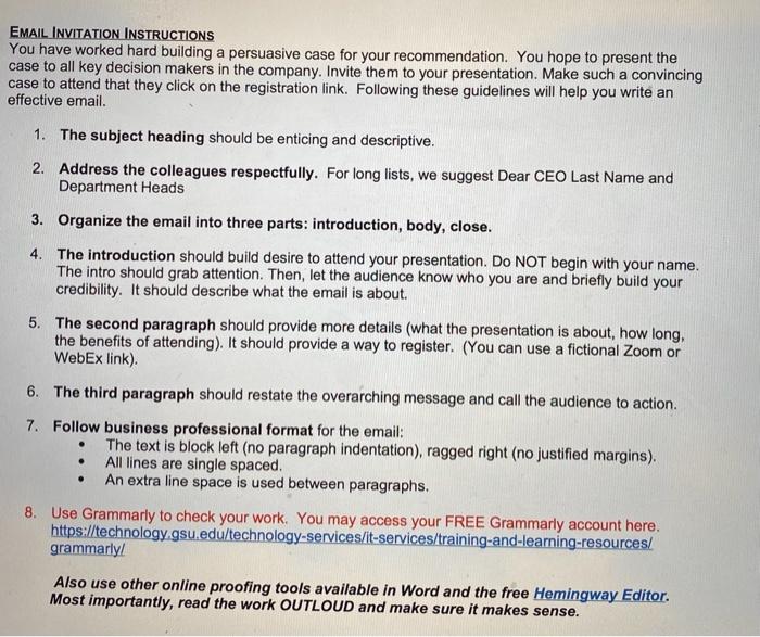 Email Invitation Instructions You Have Worked Hard Chegg Com
